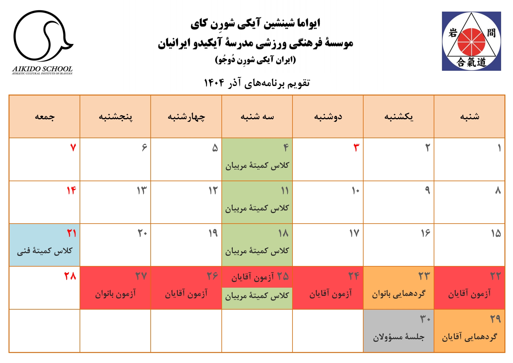 تقویم برنامه‌های آذرماه ۱۴۰۴