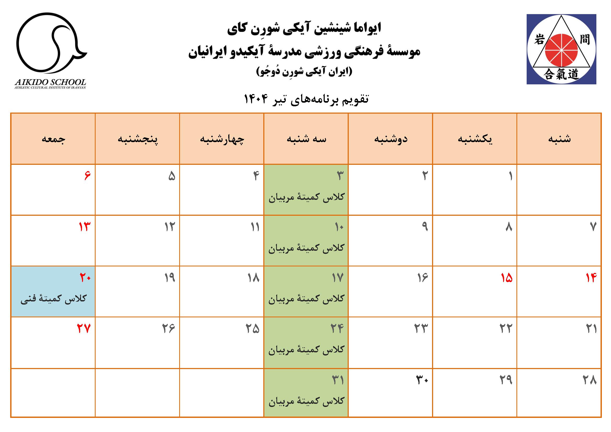 تقویم برنامه‌های تیرماه ۱۴۰۴