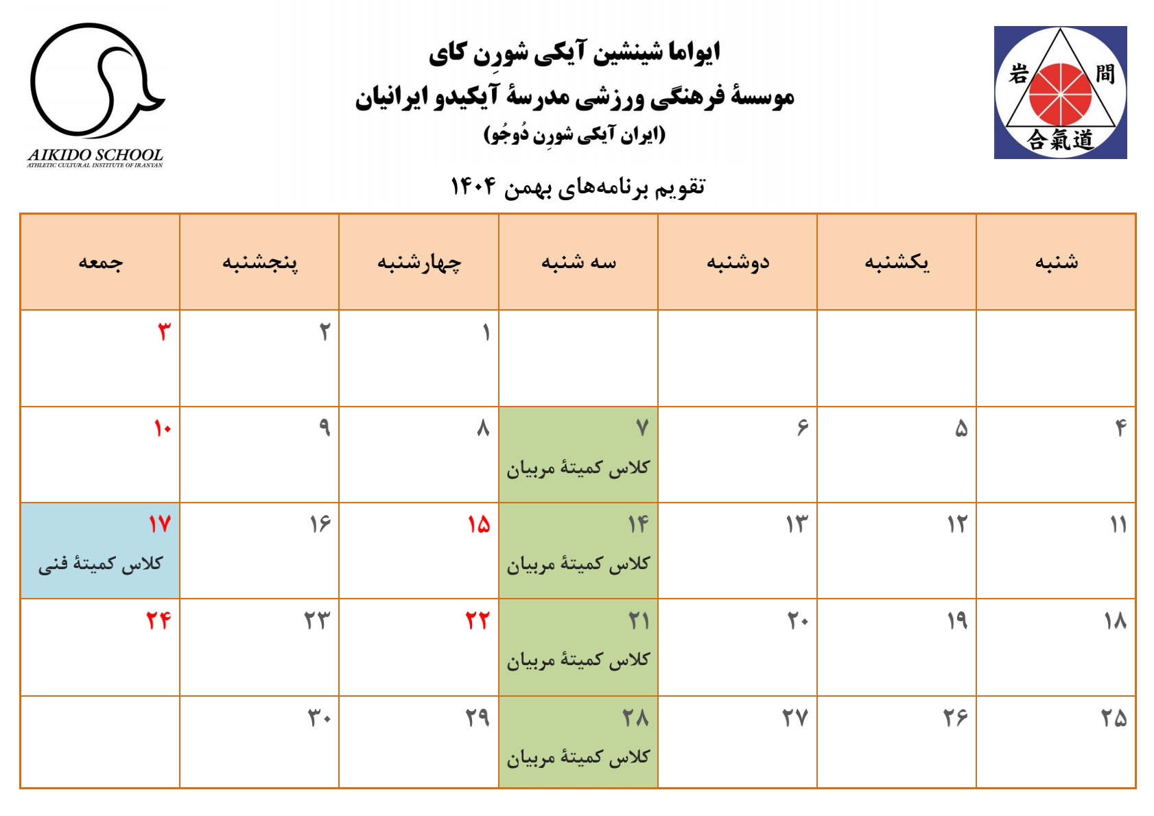 تقویم برنامه‌های بهمن‌ماه ۱۴۰۴