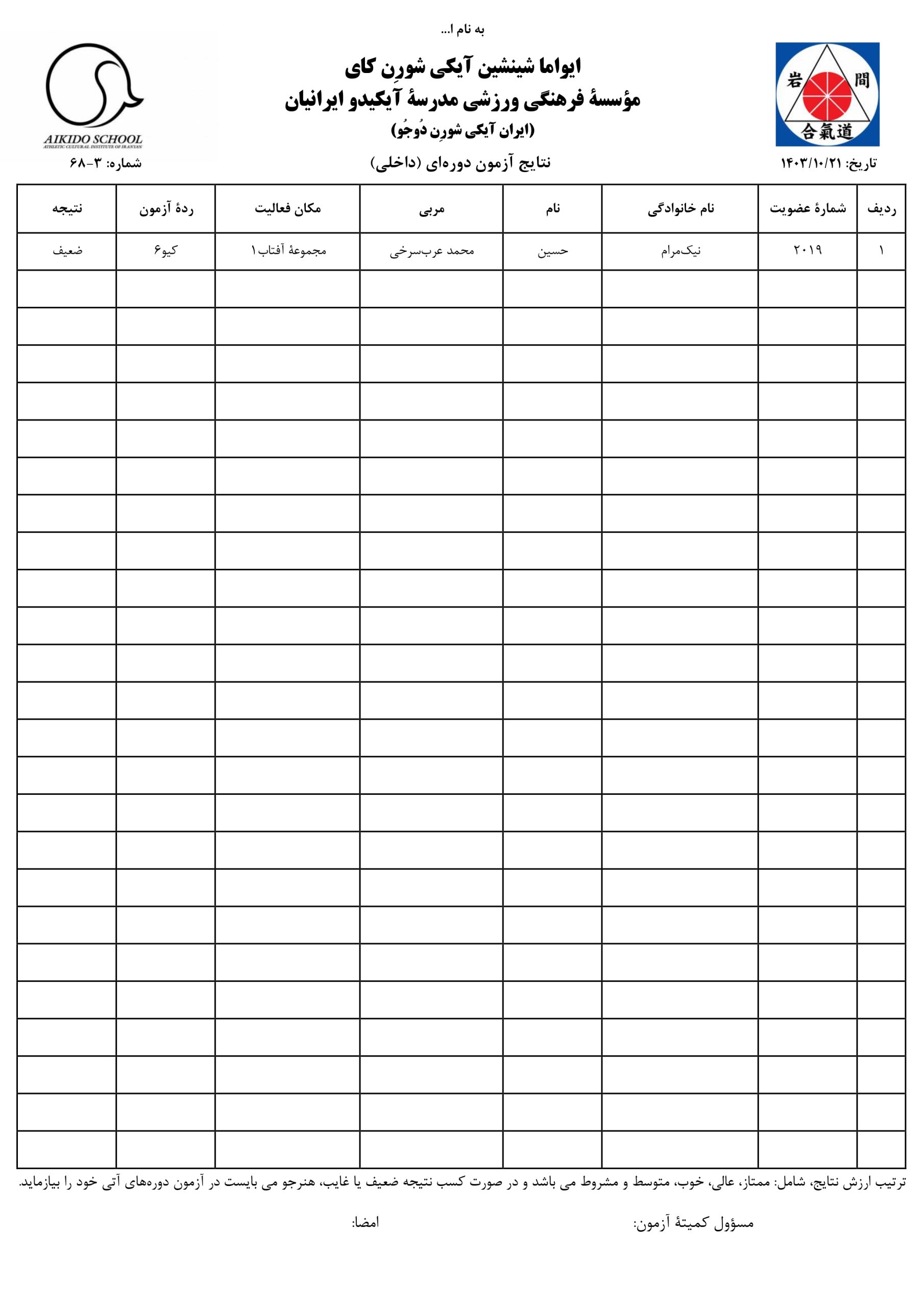 نتایج آزمون داخلی پاییزهٔ ۱۴۰۳